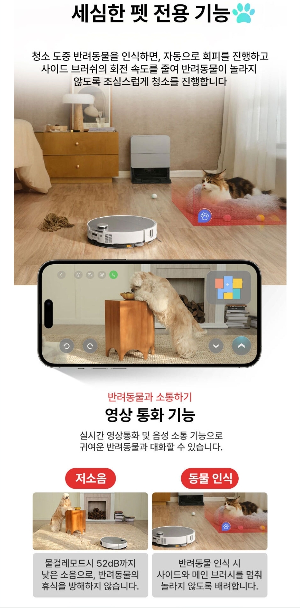 브러시 구조: DuoDivide 메인브러시 + FlexiArm 사이드브러시 (머리카락 엉킴 최소화)